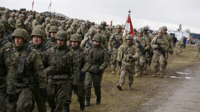 Пољски и амерички војници дочекују НАТО војнице на церемонији у Ожишу у Пољској, 2017. (Фото: Kacper Pempel/Ројтерс)