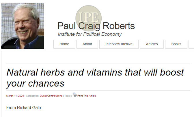 На сајту Пола Крејга Робертса објављен је списак природних лекова, биља и витамина који помажу код респираторних инфекција као и код јачања имунитета