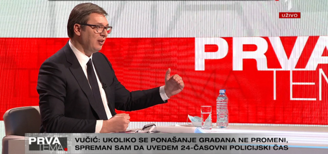 Председник Србије Александар Вучић рекао је за ТВ Прва да ће држава обезбедити помоћ малим и микро предузећима тако што ће власницима и њиховим запосленим платити минималну зараду за три месеца, ако током ванредног стања не отпусте више од 10 одсто радника.
