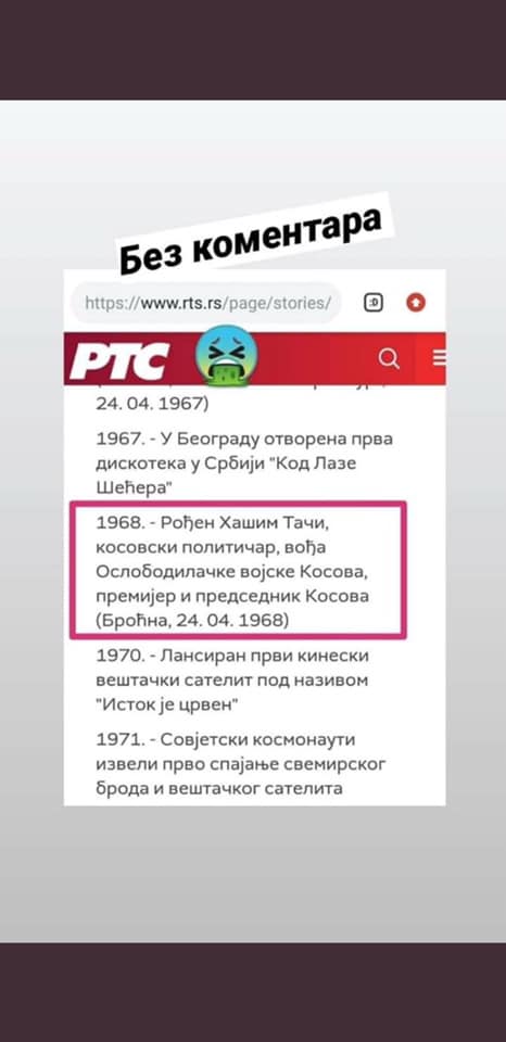 РТС „честитао“ рођендан Хашиму Тачију. После протеста честитка повучена