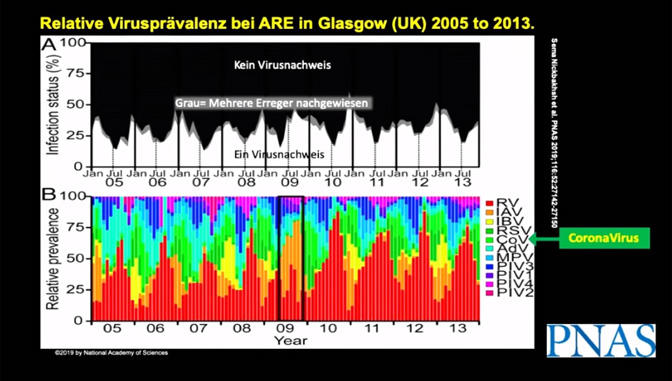 Постојала су, међутим, вишегодишња истраживања у Глазгову, где се помоћу тада постојећих тестова – нису, дакле, вршена истраживања свих стотину врста вируса, него само оних за које су постојали тестови – посматрало осам или десет разних вируса, међу којима су увек били и вируси корона.