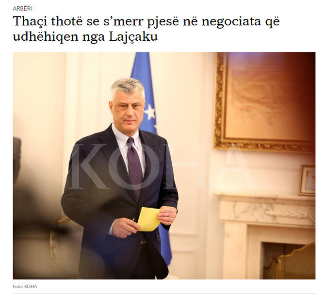 Без водеће улоге Сједињених Држава, нема фактора који те ствари покреће, рекао председник тзв. Косова Председник Косова Хашим Тачи, који је гласан у критикама специјалног изасланика ЕУ за дијалог између Косова и Србије, Мирославу Лајчаку, рекао је да неће учествовати … Настави са читањем Хашим Тачи: Американци ће закључити дијалог, нећу учествовати у преговорима које води Лајчак