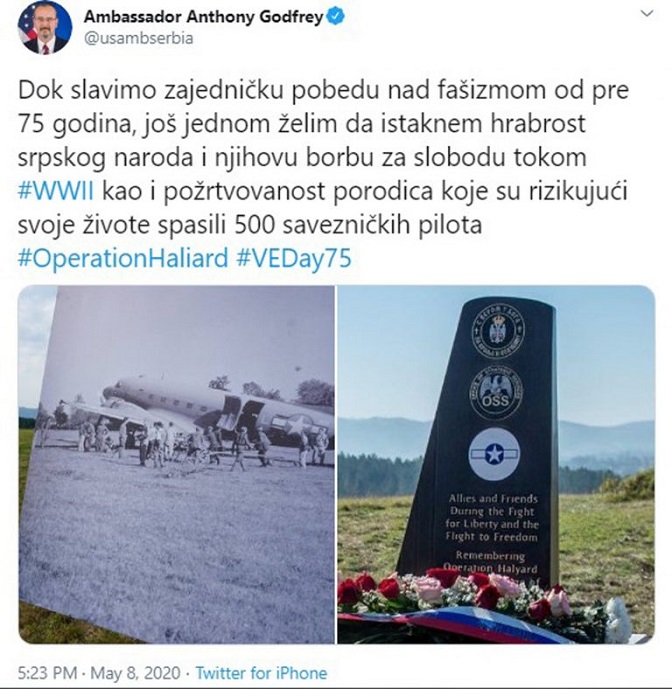 Твит америчког амбасадора о Операцији Халијард (Фото: Озонпрес)