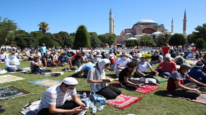 О ставу Турака према претварању Аја Софије у џамију поузданих испитивања јавног мњења још нема, мада овај аналитичар претпоставља да већина то унеколико подржава, можда и зато што имају пречих брига. Турска опозиција је остала уздржана према тој Ердогановој одлуци. Главна странка из тог блока, секуларистичка Републиканска народна партија, оспоравала је то што је одлука заснована на османском праву, не и сам тај чин, напомиње професорка Демирташ.