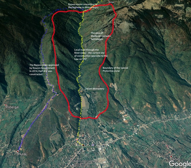 У специјално заштићеним зонама су поред Дечана и Пећка патријаршија, манастир Грачаница, Црква Ваведења Пресветле Богородице у Липљану, манастир Девич у Србици, манастир Гориоч у Истоку, манастир Будишавци у Клини, манастир Соколица у Звечану, Драганац у Гњилану, манастир Светих Архангела у Призрену, манастир Зочиште у Ораховцу… Укупно 44 српска манастира и цркве. „Закон о специјалним заштићеним зонама” скупштина Косова је, како за „Политику” објашњава Дарко Танасковић, бивши амбасадор Србије при Унеску, донела 2008. године, у склопу кампање за једнострано проглашење независности и њено прихватање у међународној заједници.