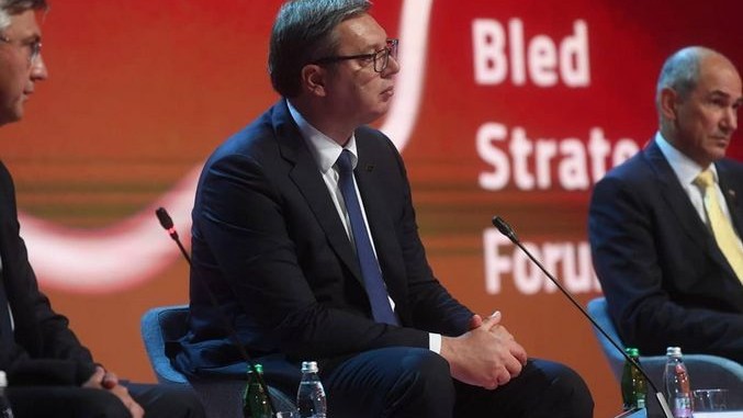 Вучић је на отварању Бледског стратешког форума, у кратком обраћању на отварању лидерског панела „Европа после Брегзита и ковида19”, рекао да постоји део грађана који не подржава европске интеграције, посебно због косовског питања, али да то не утиче на политичку одлуку да је Србија на европском путу.