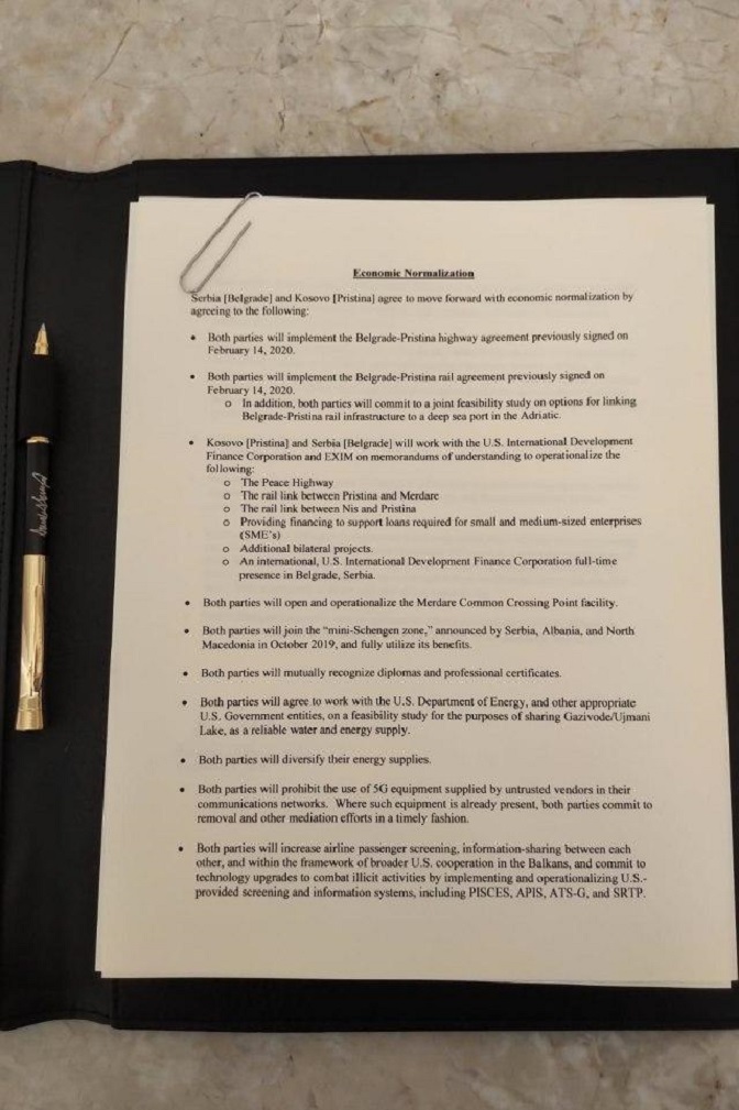 Он је за РТС прецизно растумачио садржај тачке 16 споразума из Вашингтона, која, иначе, није иста у документу који је потписао он и у другом документу, који је потписала Приштина.