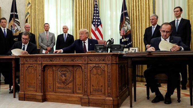 Потписивање споразума у Вашингтону, 4. 9. 2020. (Фото: Леа Милис/Ројтерс)