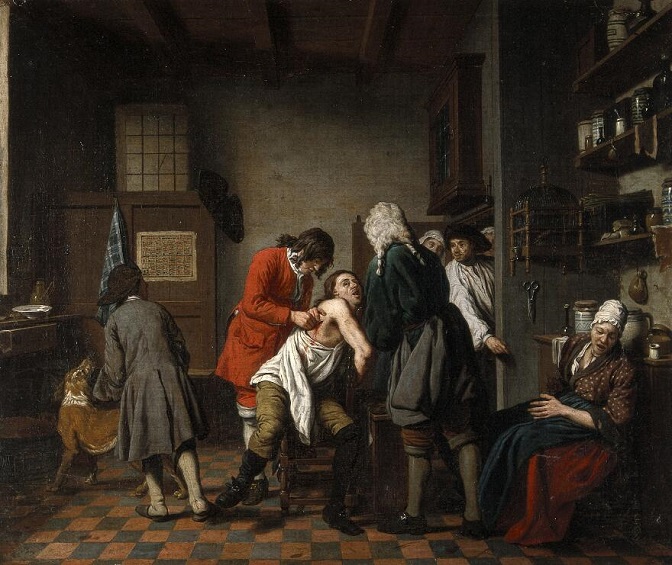 Јан Јосеф Хореманс, Унутрашњост са хирургом и његовим помоћником у посети пацијенту, око 1722. (Фото: Welcome Collection)