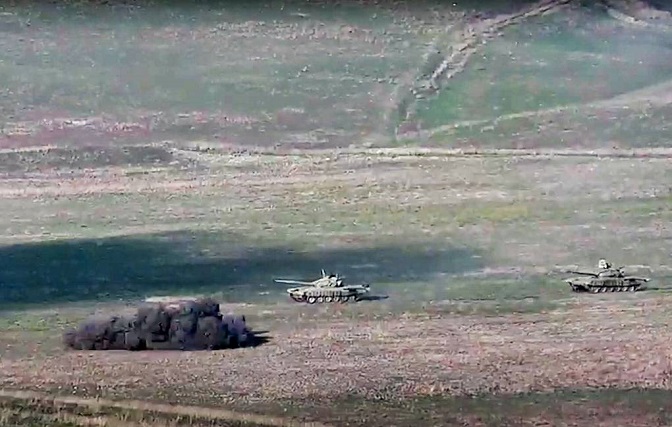 Азербејџански тенкови под дејством јерменске ватре, 27. 9. 2020. (Фото: Министарство одбране Јерменије/ТАСС)