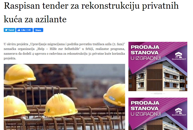 Поводом вести „Raspisan tender za rekonstrukciju privatnih kuća za azilante“, пренетој и на „Стању ствари“