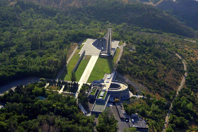 На Цицернакаберд смо кренули 15. маја поподне. Пењали смо се аутобусом поред реке Раздан. Пролазили смо између брежуљака на којима су расле неговане шуме, засађене пре неколико деценија. Јерменија је углавном гола и каменита земља и већина обрадиве земље настала је „крчењем“ камена. Поред пута смо видели свеже крчевине где је, као код нас у Херцеговини, минама и моћним машинама из земље извађен станац камен и пажљиво сложен на страни, а искрчено земљиште преорано посебним плуговима.