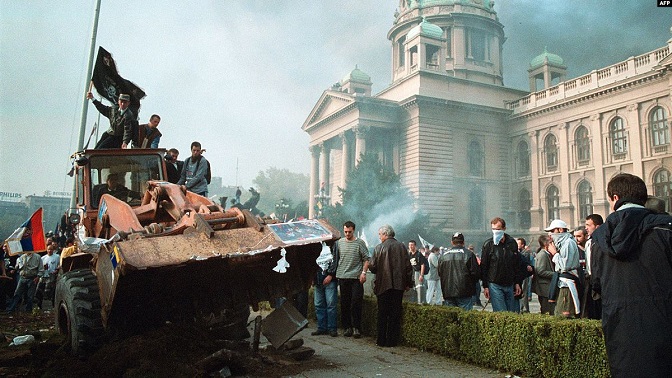 Демонстрације испред Народне скупштине Србије, 5. 10. 2000. (Фото: Митрополија црногорско-приморска)