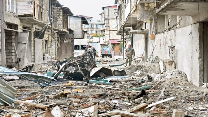Улице Степанакерта након азербејџанског гранатирања (Фото: EPA-EFE/David Ghahramanyan/NKR Infocenter/Pan Photo)