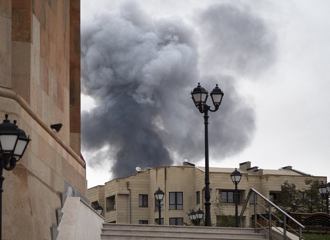 Пожар у Степанакерту после азербејџанског артиљеријског напада (Фото: Дмитри Ловетски/АП Фото)