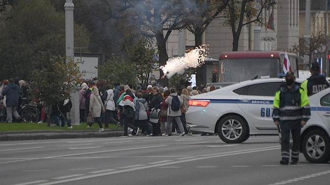 Белоруска полиција користила је против најагресивнијих “обојених“ демонстраната у Минску и шок-бомбе.