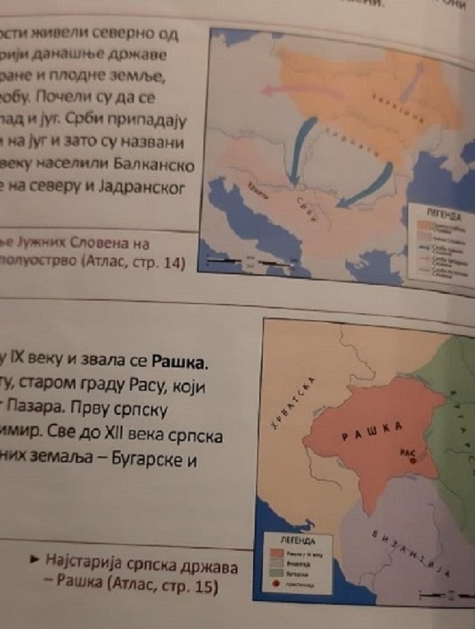 У уџбеницима за предмет Природа и друштво, у лекцији „Настанак српске државе“, наводи да се Рашка, Византија и Бугарска граниче са Хрватском