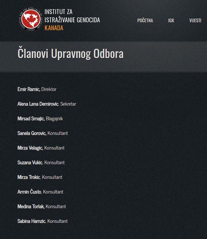 Чланови УО Института за истраживање геноцида (Извор)