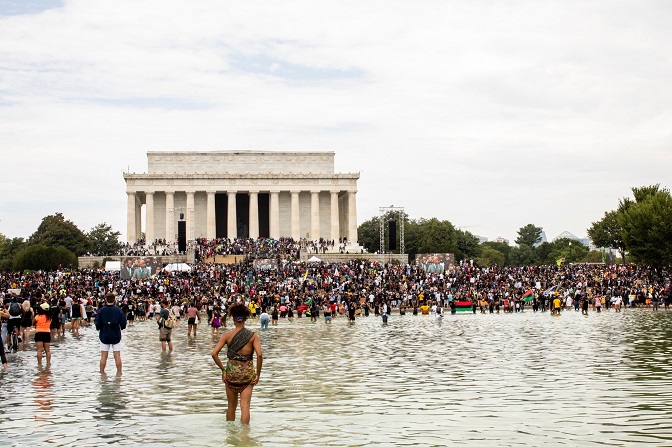 Демонстранти на Националној алеју у Вашингтону, 28. 8. 2020. (Фото: Џејсон Ендрју/Њујорк тајмс)