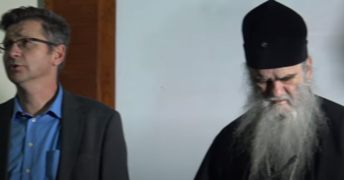 Милош Ковић и митрополит Амфилохије 2019. године (Фото: Снимак екрана/Хелмкаст)