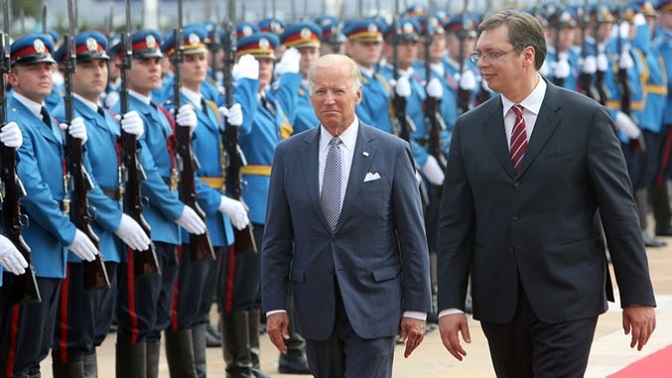 Александар Вучић и Џозеф Бајден у Београду, август 2016. (Фото: Коца Сулејмановић/ЕПА)