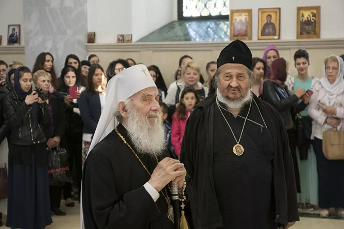 Почивши патријарх Иринеј и умировљени епископ Атанасије (Фото: Спутњику уступила Призренска богословија)