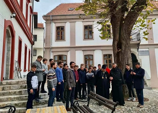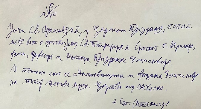 Пензионисани владика захумско-херцеговачки Атанасије у Призрен је стигао како би ђацима Богословије одржао предавање из хришћанке антропологије, али се прво са њима помолио за упокојеног патријарха, а касније му посветио и део излагања.