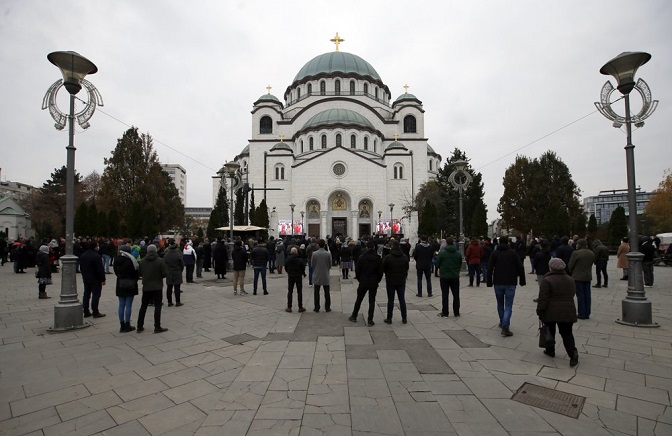 Окупљени испред Храма светог Саве током заупокојене литургије (Фото: Дарко Војиновић/АП фото)