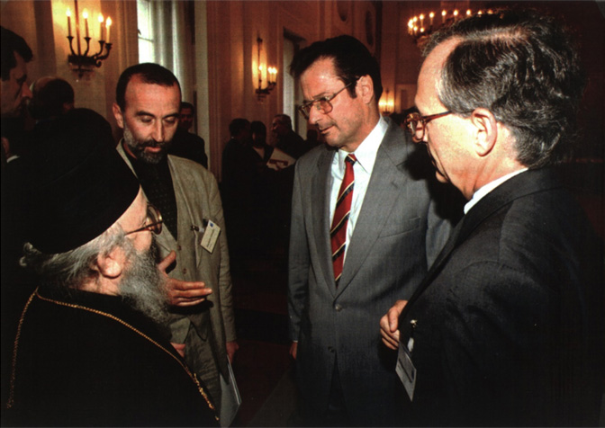 Бертелсманов форум, Берлин, 1998. Разговор са Клаусом Кинкелом, министром иностраних послова Немачке (Извор: Лична архива В. Умељића)