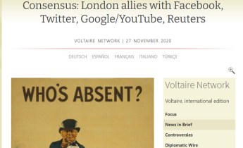 Једини лијек против дезинформисања је критичко размишљање, што захтијева вријеме и општу културу, стоји у коментару сајта који води Тјери Мејсан (Voltaire.net, 27. 11. 2020) Енглеска организација под именом Full Fact организовала је коалицију између релевантних министарстава Енглеске и Канаде … Настави са читањем Консензус на енглески начин: Лондон окупио Фејсбук, Твитер, Гугл, Јутјуб и Ројтерс због „борбе против дезинформисања“