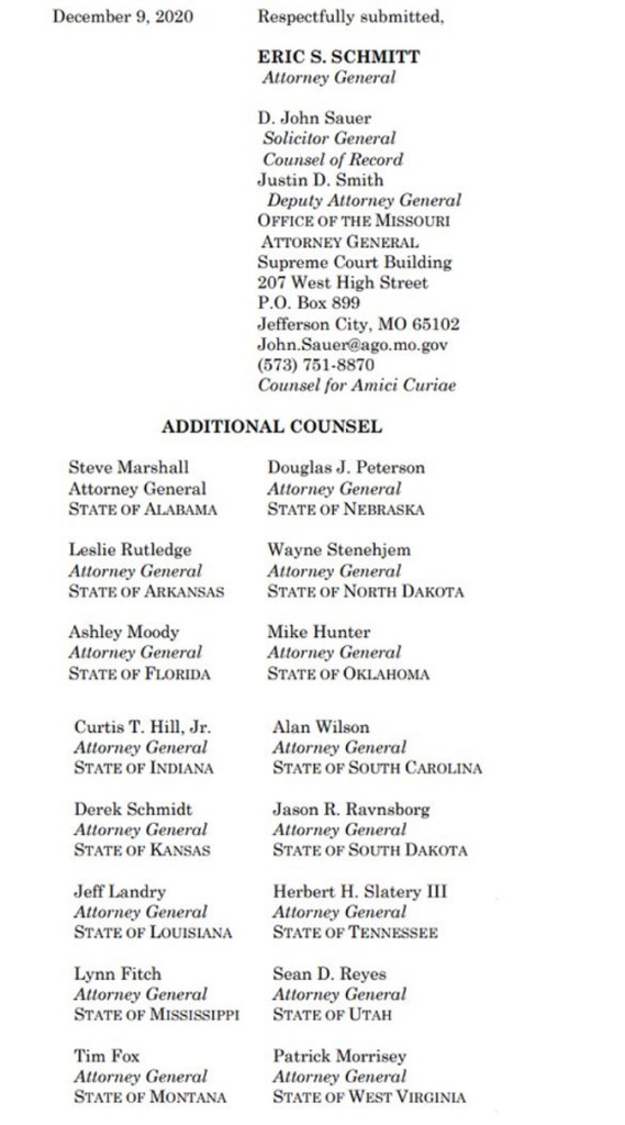 Још седамнаест америчких држава поднијело је тужбу Врховном суду САД са захтјевом да се изборни резултати у четири спорне државе пониште.