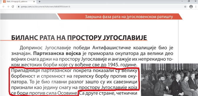 Нови уџбеник историје за 8.разред основне школе издавачке куће Клет враћа нас у стара комунистичка времена интерпретације догађаја из Другог светског рата.