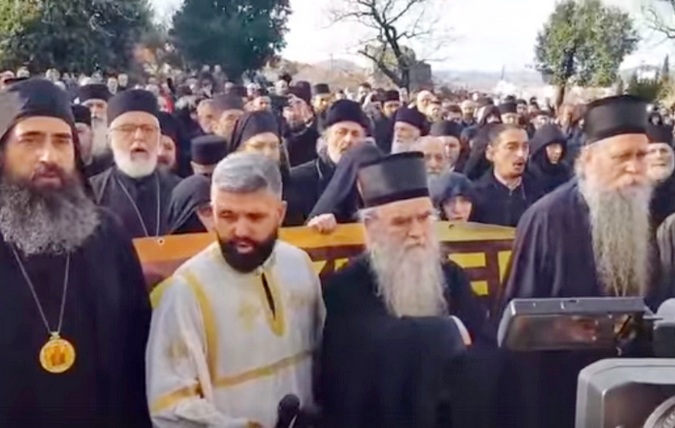 Свештенство СПЦ са епископима испред црногорске скупштине (Принтскрин Јутјуб)