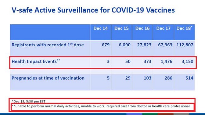 18. децембра било је 3.150 случајева од 112.807 вакцинисаних