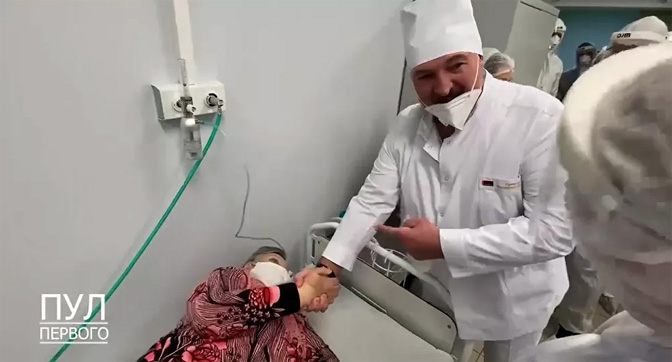 Александар Лукашенко у посети пацијентима ковид болнице (Фото: Пул первого)