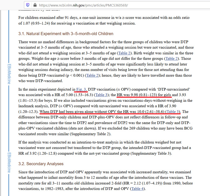 Гвинеа Бисао, тих 80-тих је имала смртност деце до 5 година 50% !!!!!!! Општа беда, неухрањеност деце, политичка нестабилност, пуч, никаква здравствена евиденција и овај рад нам доноси сензационалну статистику, којом ретроградно доказује 2017. да је нека сића од ДТП вакцине почетком 80-тих побила тамо неку дечицу.