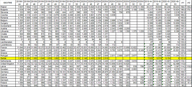 Доступни подаци за последњих 5 недеља у 2020. показују да се Финска придружила Норвешкој са смањењем броја умрлих а да је и Данска имала готово исти број као и у последњих 5 недеља 2019. У пет земаља је смањен индекс а у три повећан у односу на одабраних 4 недеља које су им претходиле 2019.