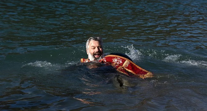 „Црква је рекла да неће бити организованог пливања, јер она не сме да позива народ. Како да организују пливање у време пандемије. Али, ја сам тражио да освештам воду, да се традиција не прекида. Рекли су ми, иди, али никога не позивај, ко је дошао, добро дошао, обави то тако. И тако сам и урадио. Отишао сам у подне, прочитао молитву, освештао воду, бацио крст, захвалио народу што је дошао и отишао“, каже архимандрит Данило.