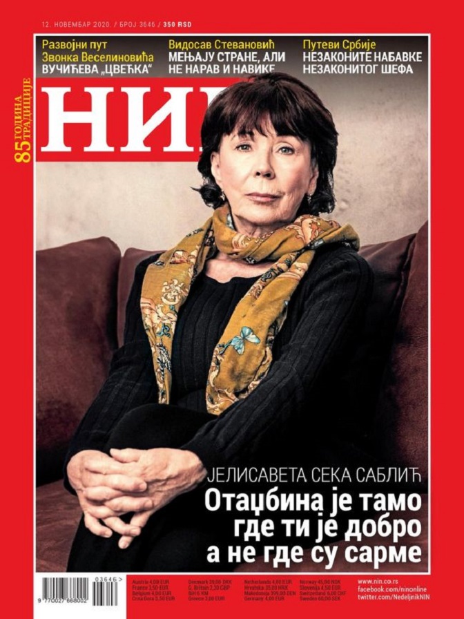 Насловна страна НИН-а са интервјуом Јелисавете Секе Саблић (Фото: НИН)