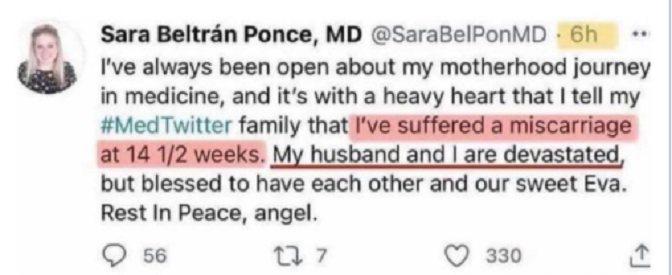 Др Сара Белтран Понс из Висконсина објавила је 28. јануара поруку на Твитеру да је у 14. седмици трудноће и да је обавила „пуну вакцинацију“. У неколико пратећих порука поновила је уобичајене ставке у вези с ковидом-19 и вакцинама.