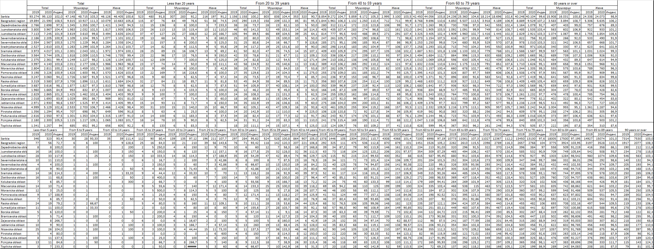 - Број умрлих од 35 до 60 година повећан је у свим старосним групама, а бројем за 4 лица од 35 до 39 година, за 43 лица од 40 до 44 година, за 68 лица од 45 до 49 година, за чак 247 лица од 50 до 54 година и за 60 лица од 55 до 59 година старости.