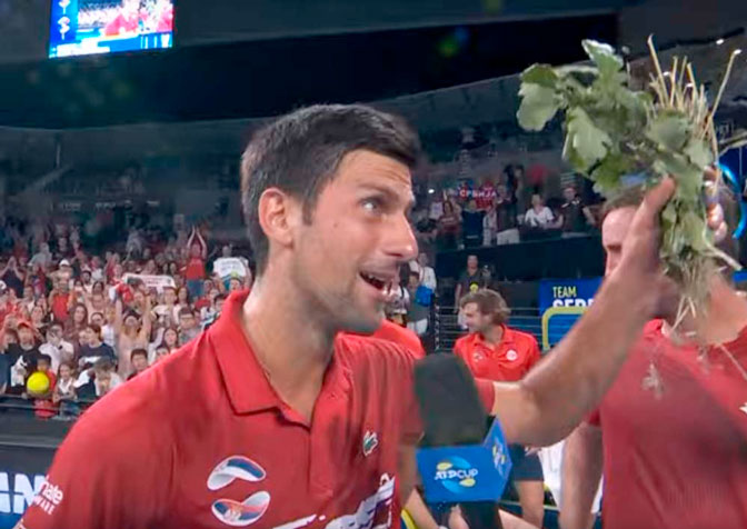 Велико изненађење и радост приређена је Ђоковићу кад су му навијачи јануара 2020. уручили Бадњак за Бадњи дан (Извор: Између сна и јаве)