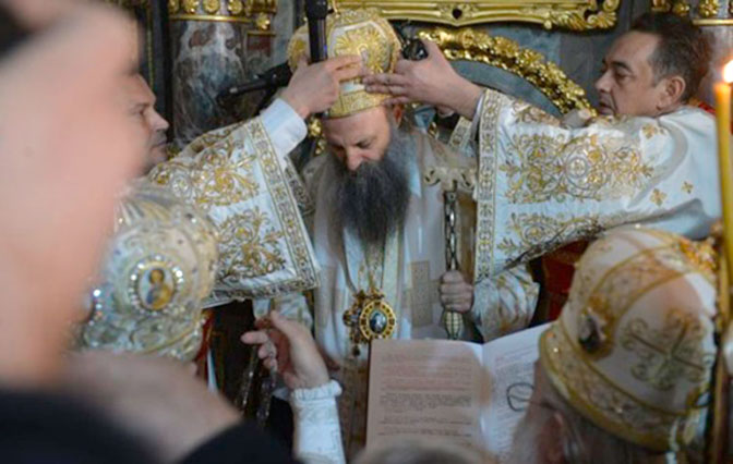 Његова светост господин Порфирије, ког је јуче Сабор Српске православне цркве изабрао за новог поглавара СПЦ, устоличен је у најсветији трон Архиепископа пећког, митрополита београдско-карловачког и патријарха српског.
