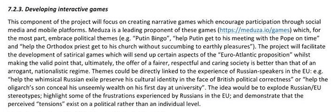 Годину потом, исто одјељење МСП-а изложило је програм до 2022. године који би био финансиран с 8,3 милиона долара новца британских пореских обвезника, с циљем успостављања нових информативних медија и подршке постојећим медијским операцијама „ради супротстављања руским покушајима сијања раздора“ и „јачања отпора непријатељској руској пропаганди у балтичким државама“.