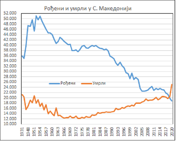 - Број рођених је најмањи од Другог светског рата, тачније од 1931. од када постоје подаци у бази Државног завода за статистику Северне Македоније.