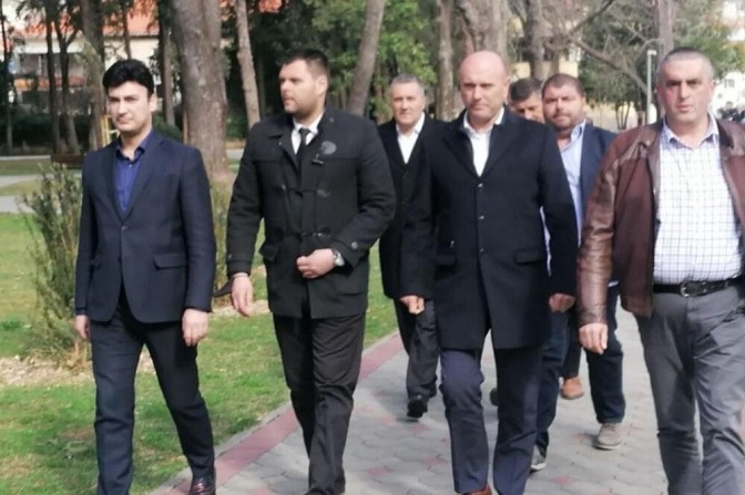 Делегација из Будве и кандидат за градоначелника Никшића испред Демократског фронта Марко Ковачевић у Требињу (Фото: Вијести)