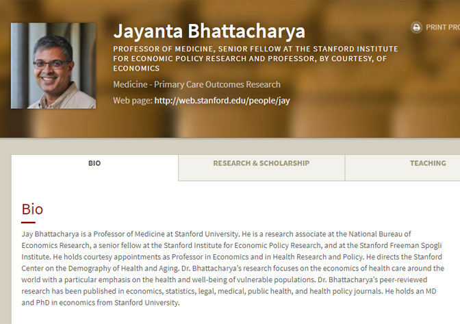 Др Џајанта Батачарја (Jayanta Bhattacharya) са Универзитета Станфорд (САД) изјавио је за Њузвик да су закључавања поводом ковида-19 „најгора грешка здравствених власти у посљедњих стотину година“.