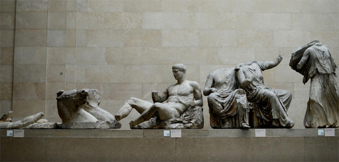Од стицања независности 1832. Грчка изнова и изнова позива да се изврши репартијација овог уметничког блага – познато и по називу Британско или Елгиново мраморје, по британском дипломати лорду Елгину који га је уклонио са атинског Партенона почетком 19. века, када је Грчка била под османском влашћу.
