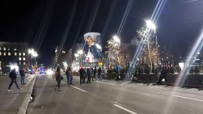 Повремено учесници протеста стоје на улици, али саобраћај испред Скупштине није обустављен, преноси Бета.