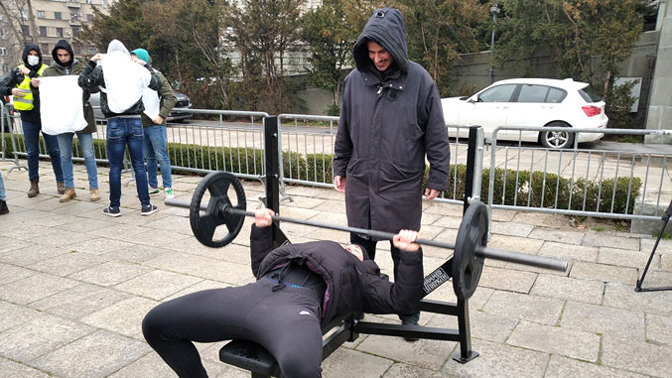 Ни снег, ни прилична хладноћа данас у подне нису поколебали фитнес заједницу Србије да на Тргу Николе Пашића испред Дома Народне скупштине организује јавни час вежбања под слоганом „Реци да здрављу”. На платоу испред овог здања симболичну у пет минута до 12 представници ове заједнице окупили су се, како су рекли, не да би протестовали, већ да би упутили иницијативу надлежнима и скренули пажњу на ову делатност која промовише здравље, здрав живот и вежбање.